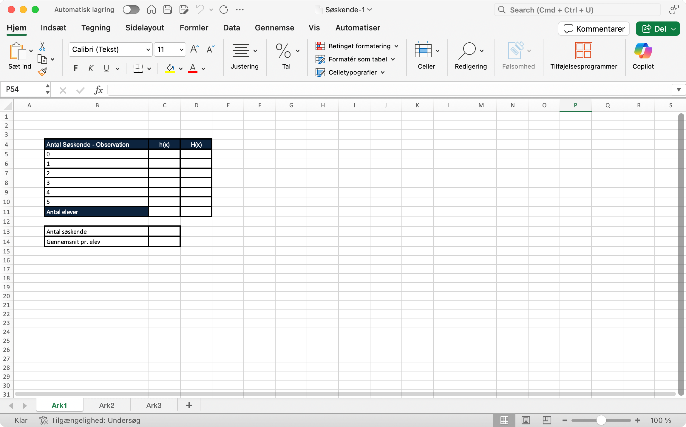 - Udfyld i et regneark skemaet for din klasse.